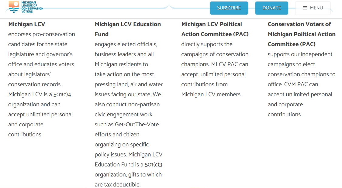 The Michigan League of Conservation Voters promotes good government, which they believe includes political transparency and accountability. For environmentally friendly bills to pass, elections need to be open and fair. They recently created a Digital Accountability Suite, which allows Michigan residents to find their local lawmakers’ scorecards for their votes on environmental bills.”