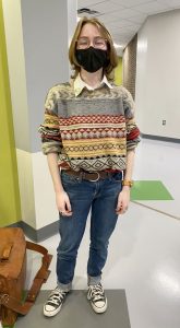 A: Probably my sweater and my pronoun pin. I got [the sweater] from Amazon and the pronoun pin from a small business in Ypsi.