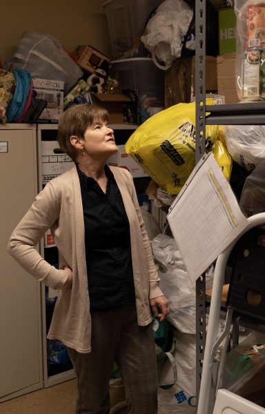 Carol Tinkle, a WCC project and data technician, manages the WCC Emergency Food Cupboard. Patrick Sullivan | Washtenaw Voice