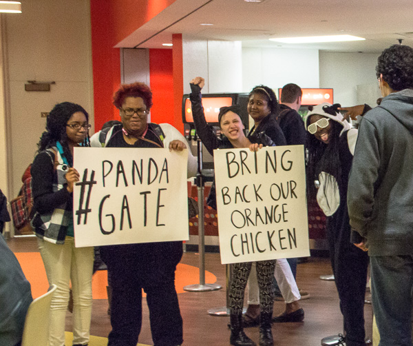 The incident has been branded “#PandaGate,” as evidenced by trending topics on Twitter. Students rallied around the usual Panda Express line this past Wednesday carrying signs reading “Bring Back Our Orange Chicken,” “No Rice, Not Nice,” and “Dick Cheney Made Money Off The Iraq War.”