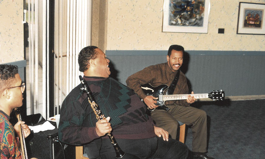WCC legend Morris Lawrence, middle, who forged the college’s music program and its close connection with jazz, plays with John E. Lawrence, right, who followed in his footsteps, leading the jazz band and teaching music at the college for 36 years. John E. Lawrence | Courtesy Photo