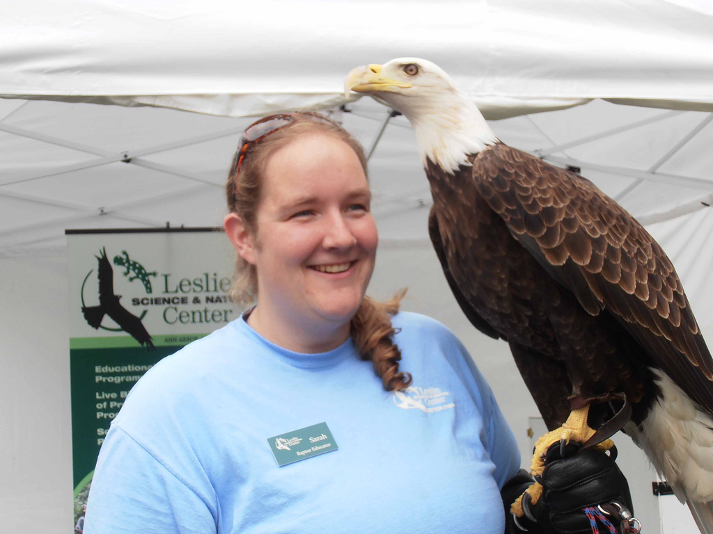 Sarah Gilmore of the Leslie Science and Nature Center presents a bald eagle at the Green Street Fair in Plymouth, Michigan. Leslie Science and Nature Center | Courtesy Photo