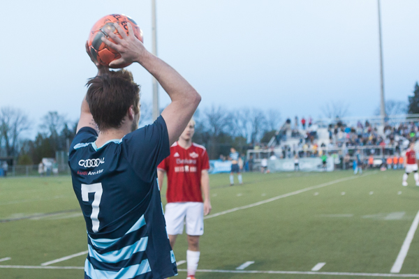 - Ann Arbor center midfielder Daniel Mattos prepares for a set piece at the AFC Ann Arbor season opener on Friday, May 1 at Hollway Field. EJ Stout | Washtenaw Voice