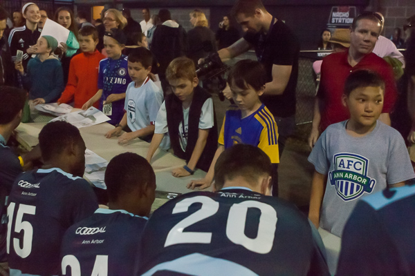 - Players signed autograph for eager fans following the AFC Ann Arbor season opener on Friday, May 1 at Hollway Field. EJ Stout | Washtenaw Voice