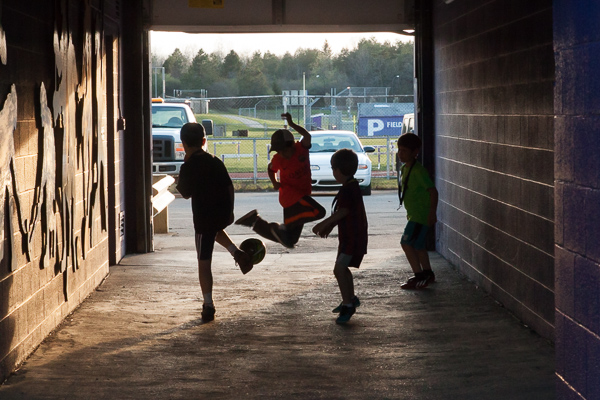 - Young soccer enthusiasts practice in the tunnel of Hollway Field at the AFC Ann Arbor season opener on Friday, May 1. EJ Stout | Washtenaw Voice