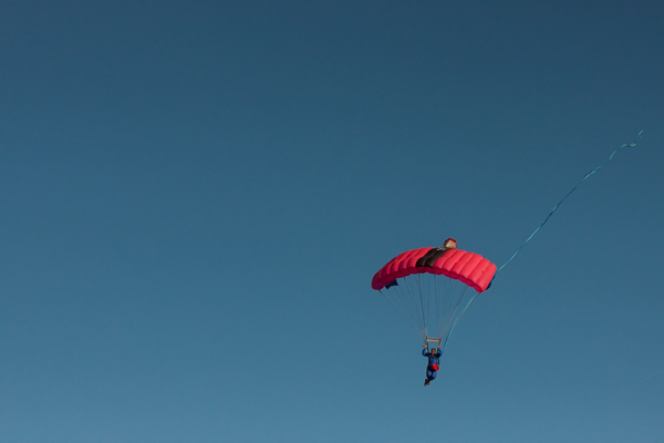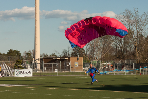 A parachuting skydiver ceremoniously flew in the game ball, compliments of Skydive Tecumseh, which set the tone for an evening of excitement.