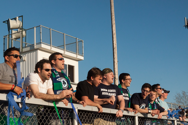 The Main Street Hooligans supported their hometown team at the AFC Ann Arbor season opener on Friday, May 1 at Hollway Field. EJ Stout | Washtenaw Voice