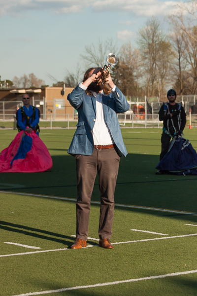 A parachuting skydiver ceremoniously flew in the game ball, compliments of Skydive Tecumseh, which set the tone for an evening of excitement.