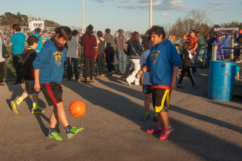 - Young soccer enthusiasts practice in the tunnel of Hollway Field at the AFC Ann Arbor season opener on Friday, May 1. EJ Stout | Washtenaw Voice