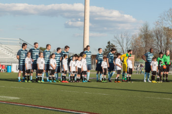 - Players line up in preparation for the AFC Ann Arbor season opener on Friday, May 1 at Hollway Field. EJ Stout | Washtenaw Voice