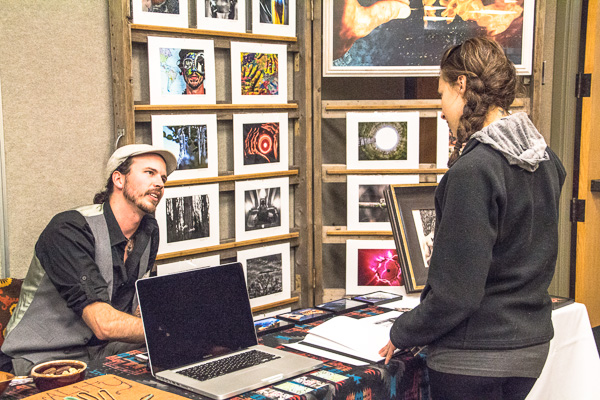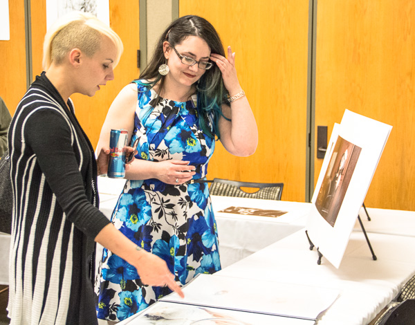Shannon Vandervennet, 35, a photography student from Bellville, and Lauren Sulsarz, 32, from Detroit, admires Vandervennet’s display at the annual DMA Student Gala. Gray Bancroft | Washtenaw Voice