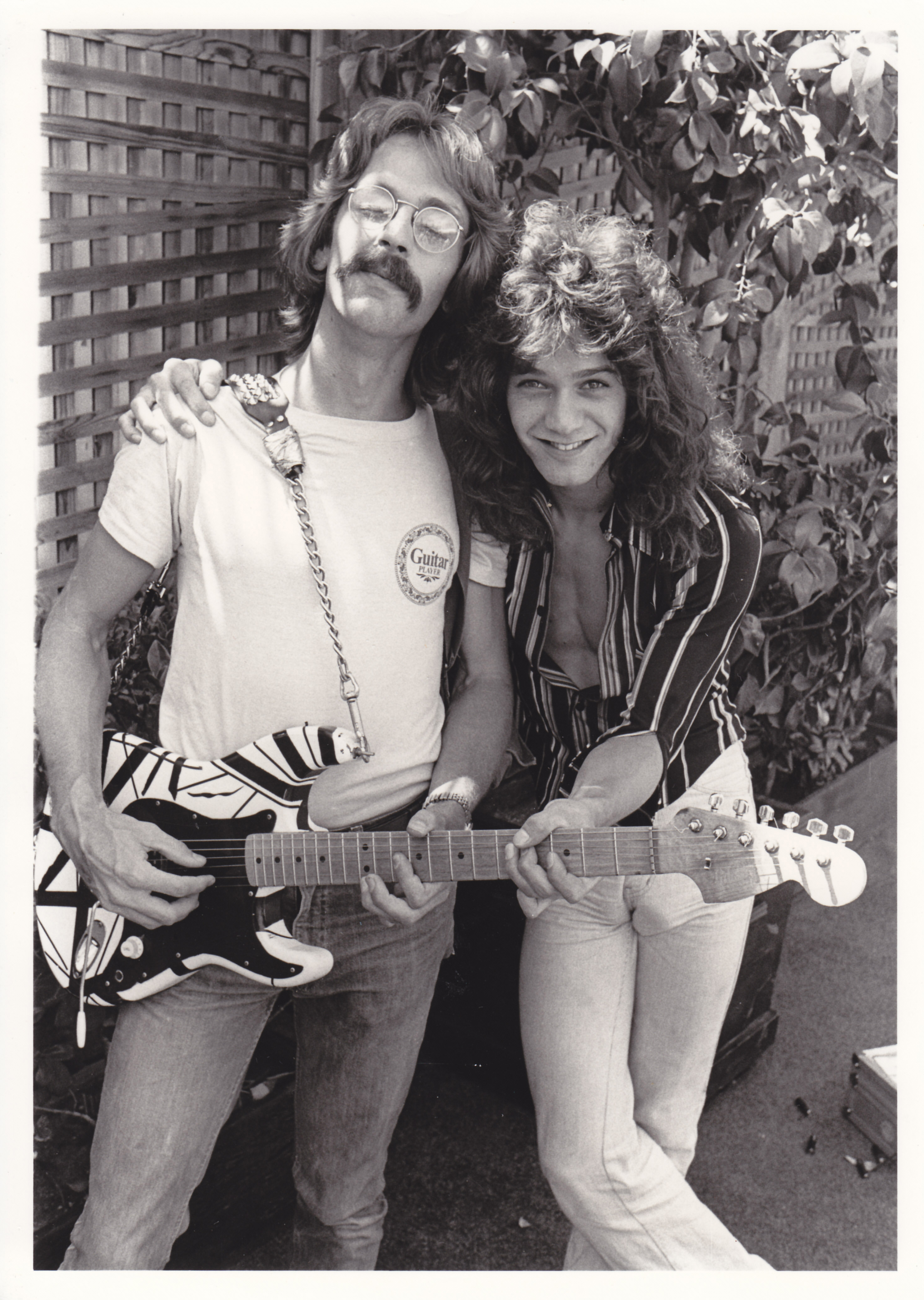 Jas Obrecht and Eddie Van Halen after Obrecht acquired Van Halen’s first ever interview in 1978. | Courtesy of Jon Sievert