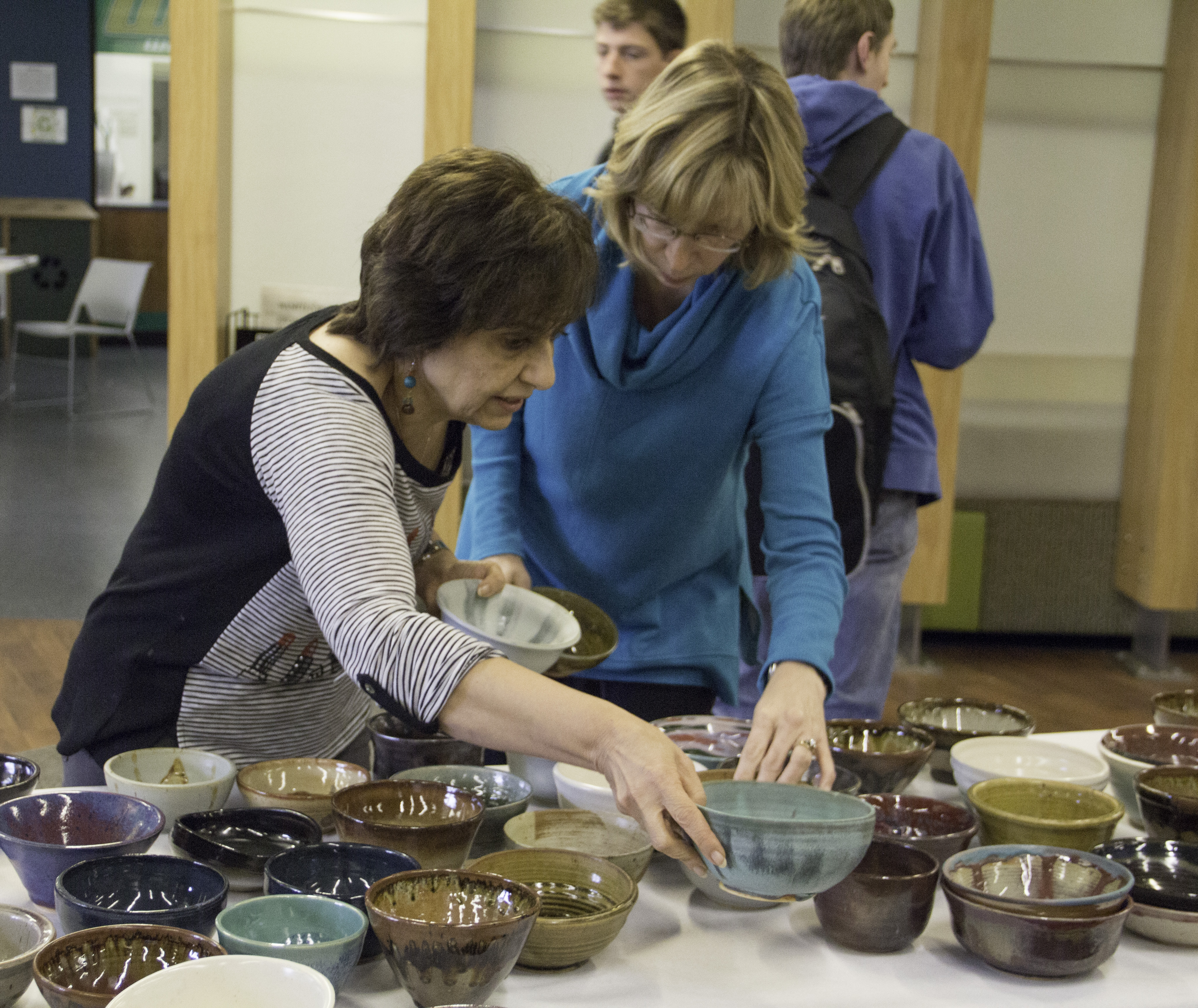Financial services staff members Azie Pirooz and Ann Kennedy stop by the Empty Bowls event. Gray Bancroft | Washtenaw Voice