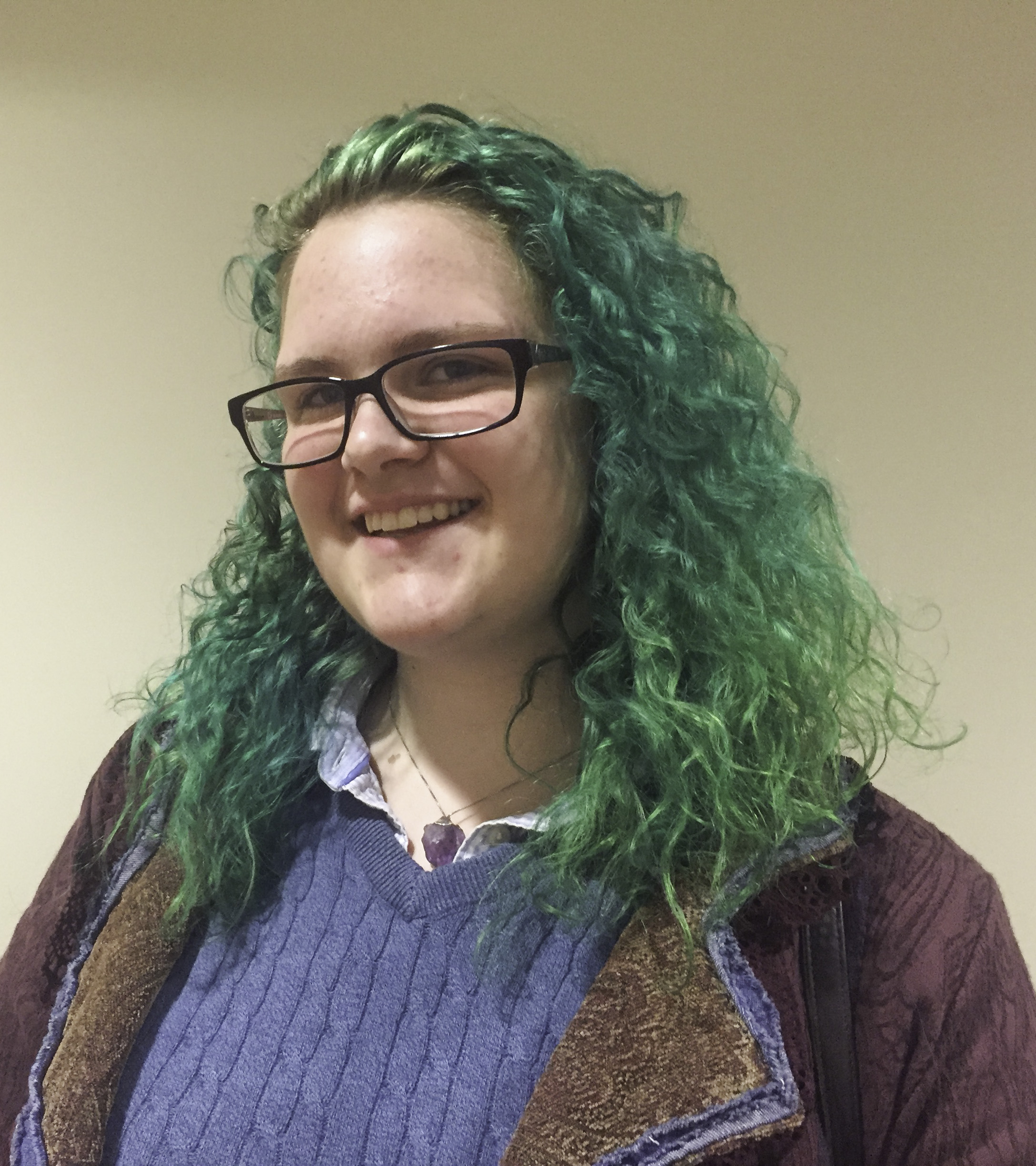“Generally, it’s been very positive. People will comment on it a lot, say it’s really cool. A lot of elderly people will stop me and ask me about it, but for the most part, everyone has been nice vocally. I do notice I get stared at sometimes, which I should’ve thought of when dyeing my hair green, but it just never really occurred to me because I’ve already had my hair other colors. A lot of people ask me how I got the courage to do it and it’s not a courage thing, it’s just, I like who I am and this is part of the way of expressing myself and it’s not hard to do because I love myself, and I’m beautiful with whatever hair color I have.”