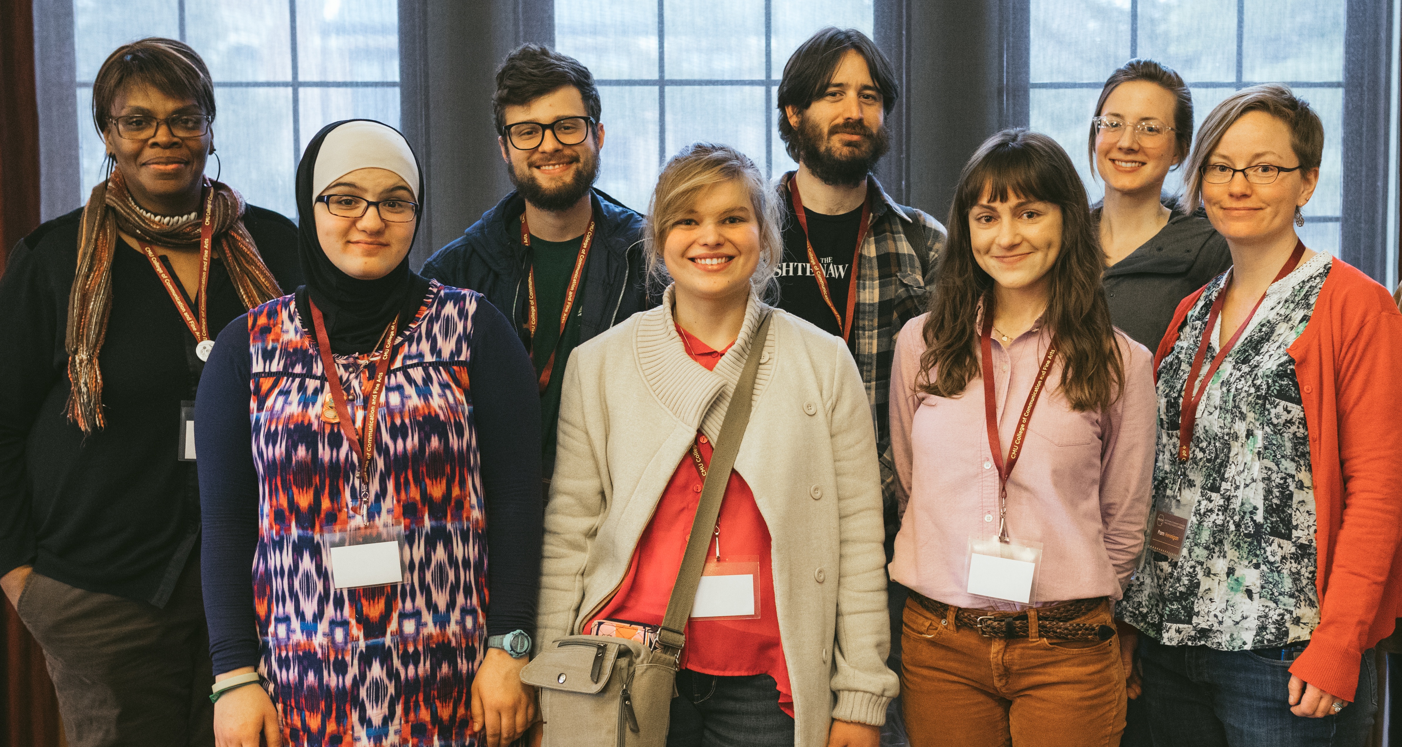 Members of the Voice team pose at the close of the Michigan Community College Press Association conference April 7. Students attending included, from left, Charlotte Young Bowens, Islam Ashour, Andrei Pop, Natalie Jarvie, Sal Lombardo, Sara Faraj, Suni Jo Roberts and Pam Hennigan.