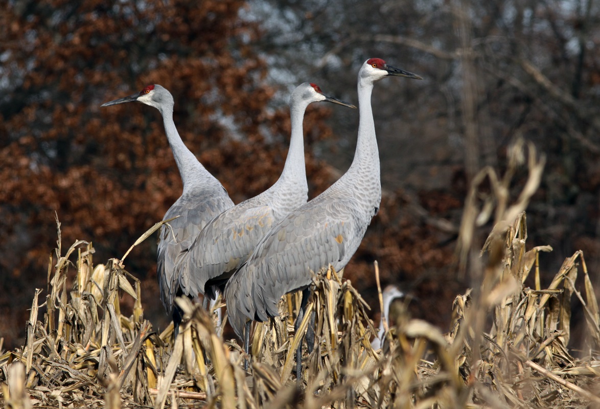 Sandhill cranes spend October and early November in Michigan marshlands. The cranes eat a little bit of everything: “Grain, insects, small lizards, they are unique in that they are omnivores,” Cain said.