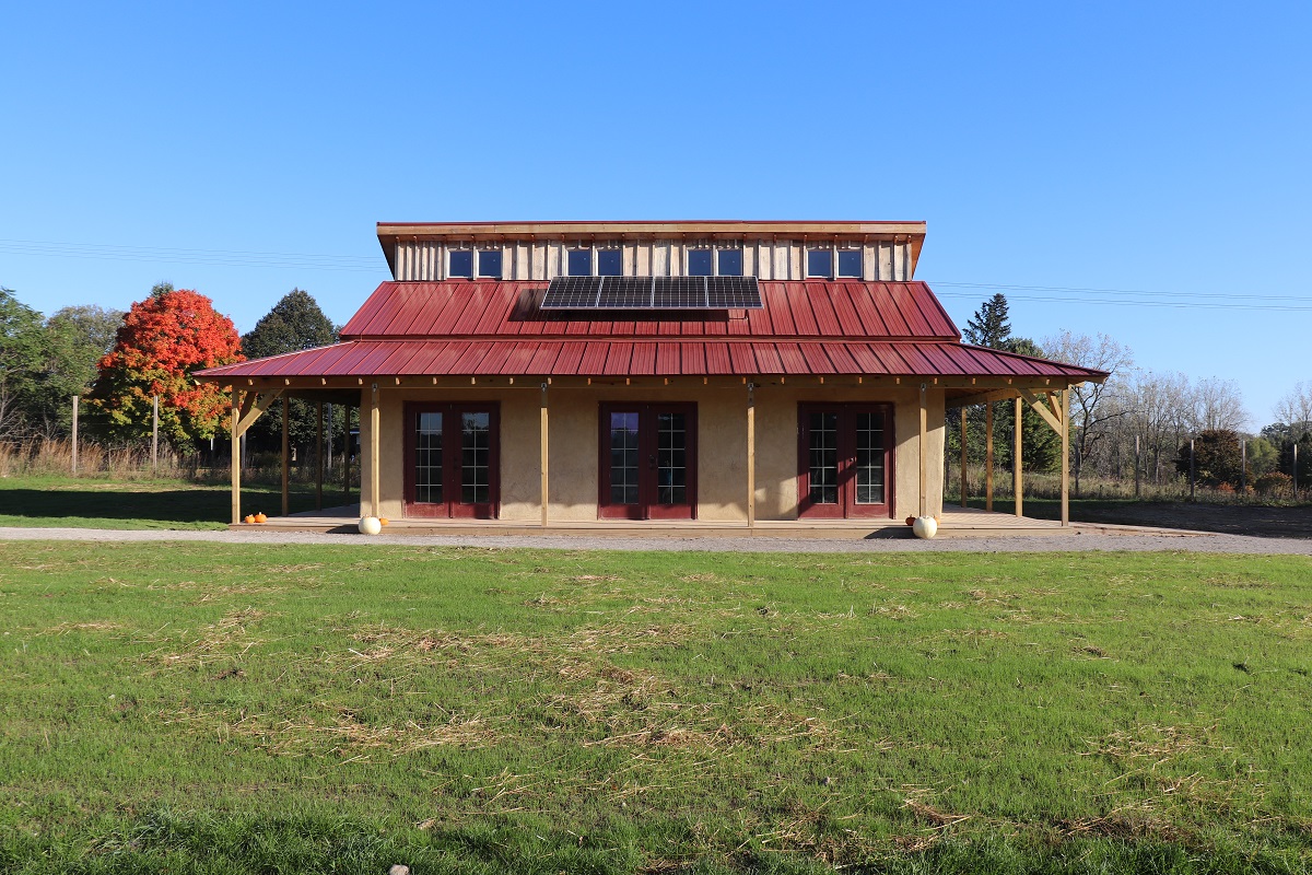 Straw bale building uses solar panels for sustainable energy. Joshua Mehay | Washtenaw Voice