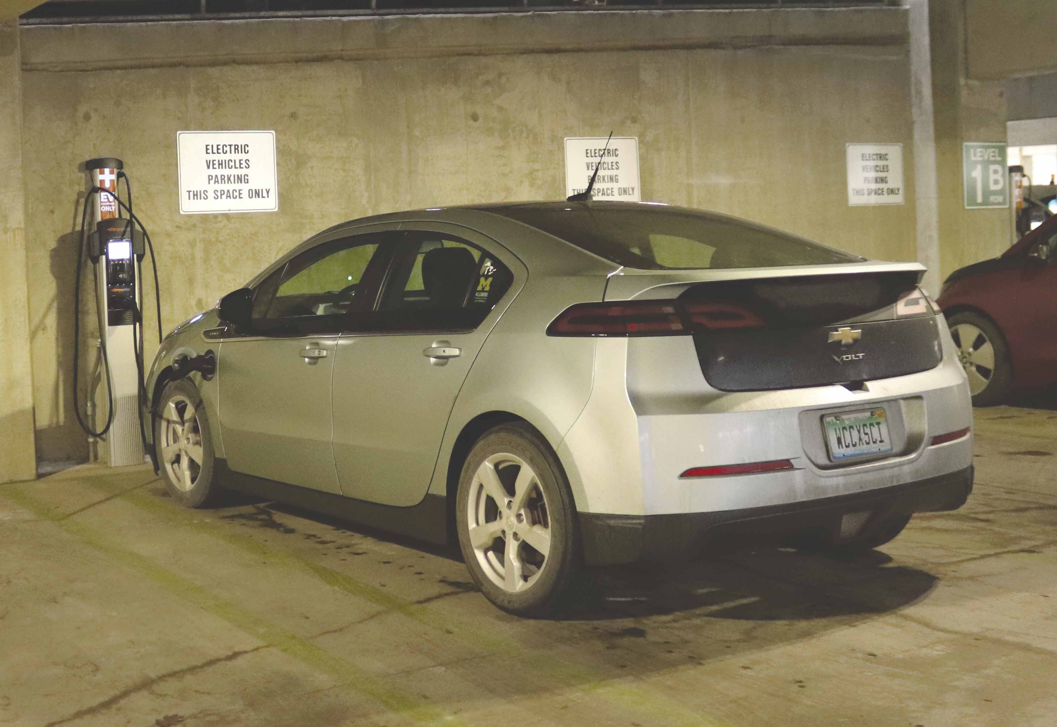 - Electric car chargers inside parking structure support cleaner energy. Josh Mehay | Washtenaw Voice
