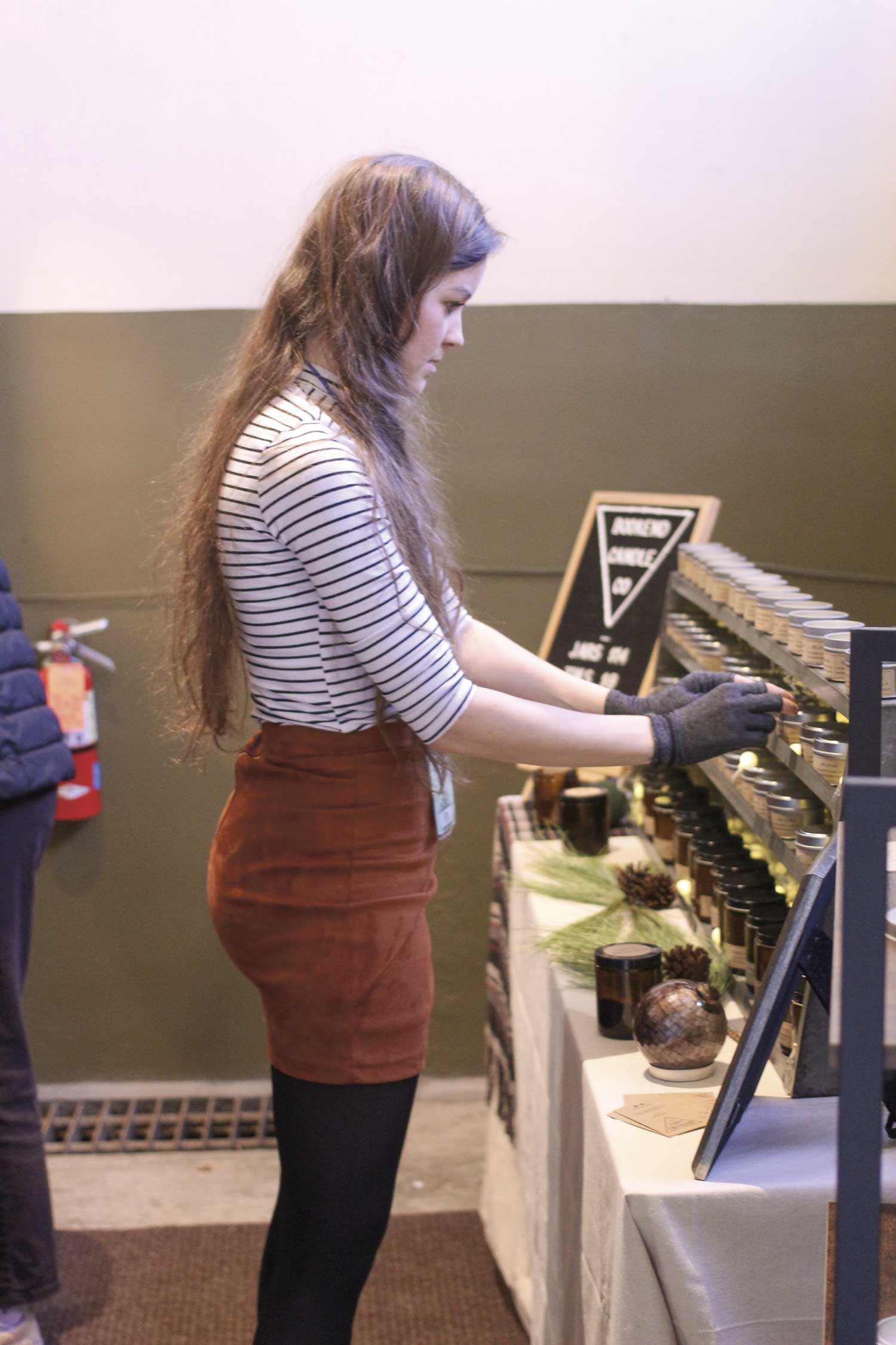 - Erin Berger, owner of Bookend Candle Co., has been creating homemade candles since January of this year. Here, she arranges them for the fair. Find her store, Bookend Candle Co., on Etsy. Vardan Sargsyan | Washtenaw Voice