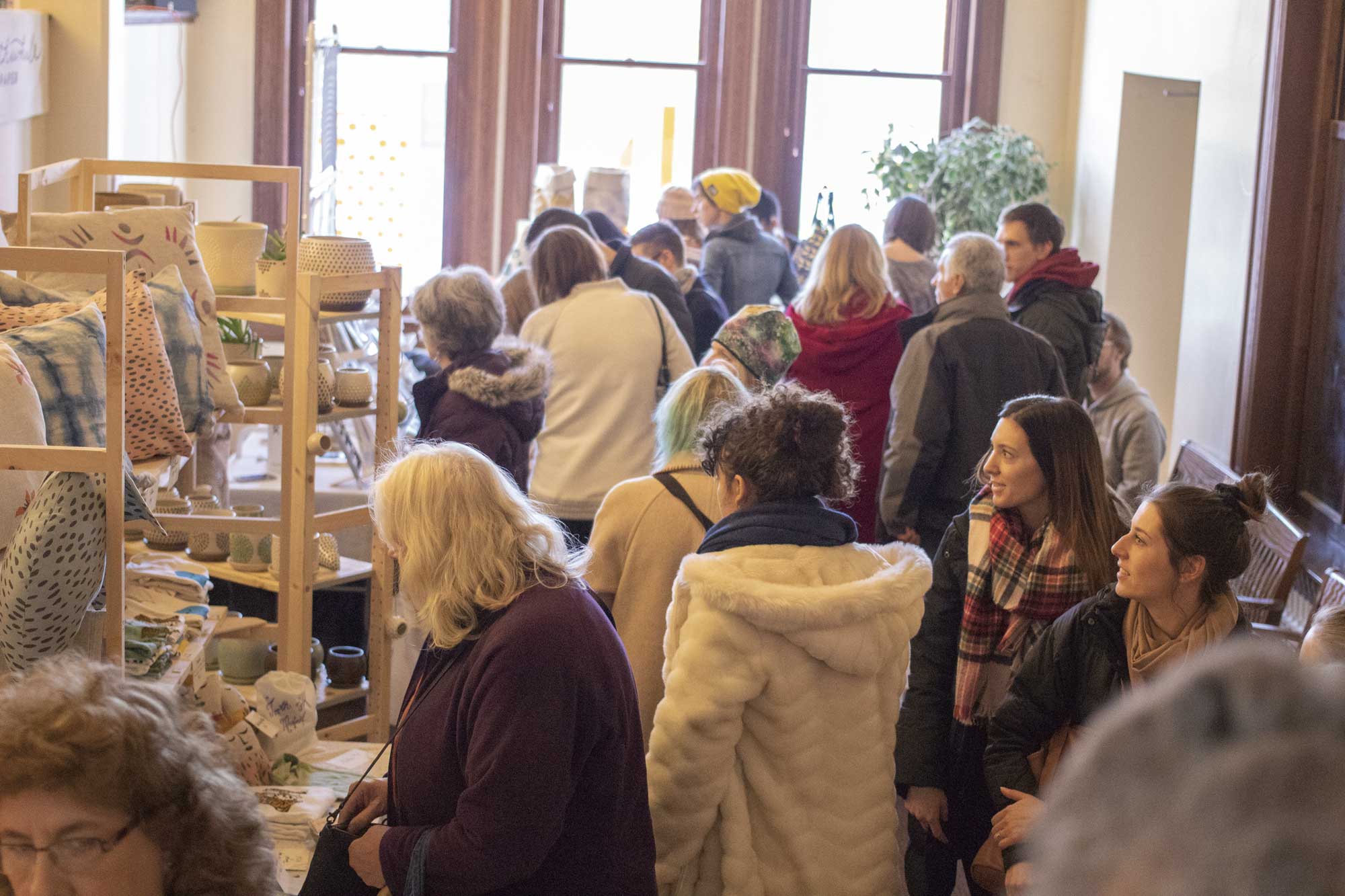 - Event attendees admire handmade art from local artists. Vardan Sargsyan | Washtenaw Voice