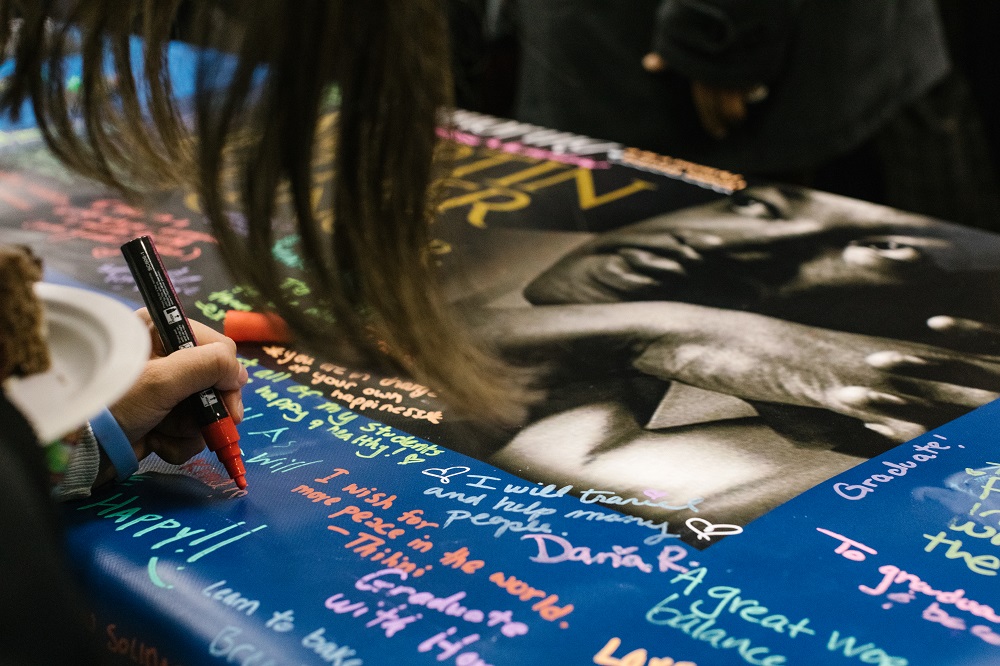 - Students, staff and faculty shared their dreams inspired by Martin Luther King, Jr. on a banner. Sara Faraj | Washtenaw Voice