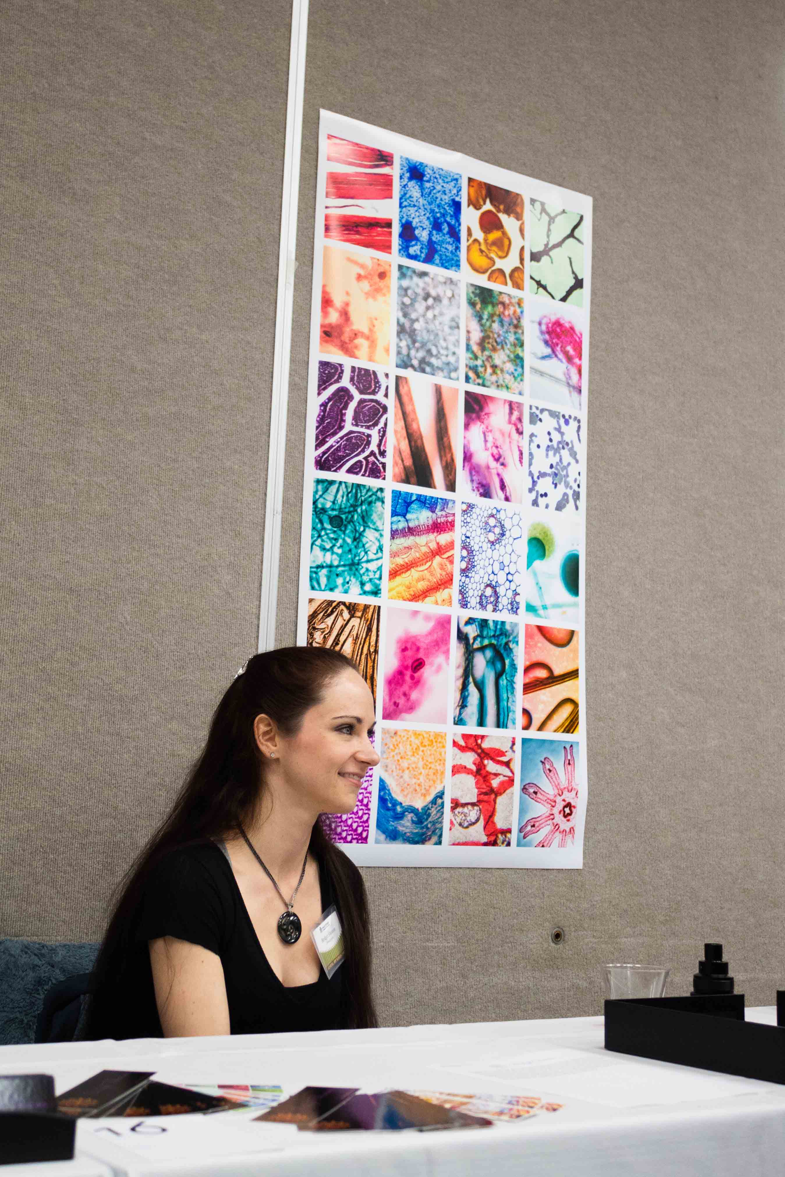 One photography student, Bridget Shearon, had on display some colorful photos taken through a microscope lens.