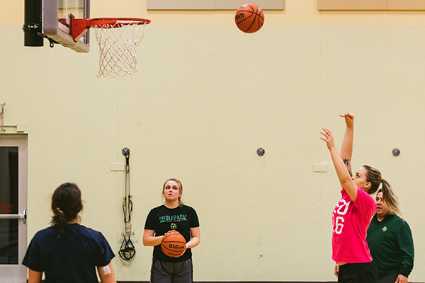 Students play basketball at WCC in winter 2019. Winter sports can help students stay active during the cold season. Voice file photo