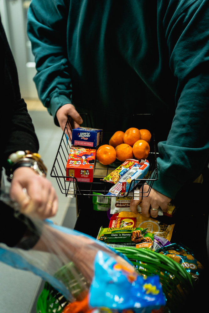 - Preparing a basket for the snack pantry. Torrence Williams | Washtenaw Voice