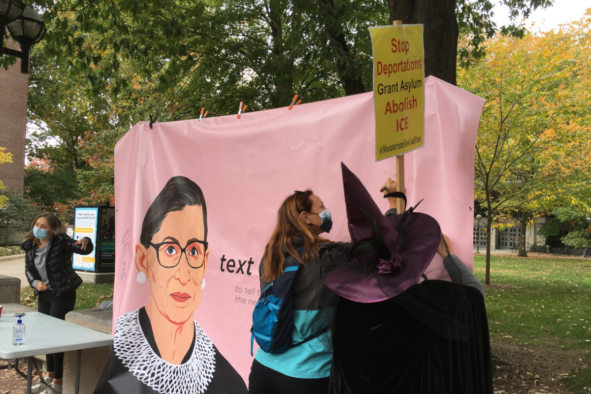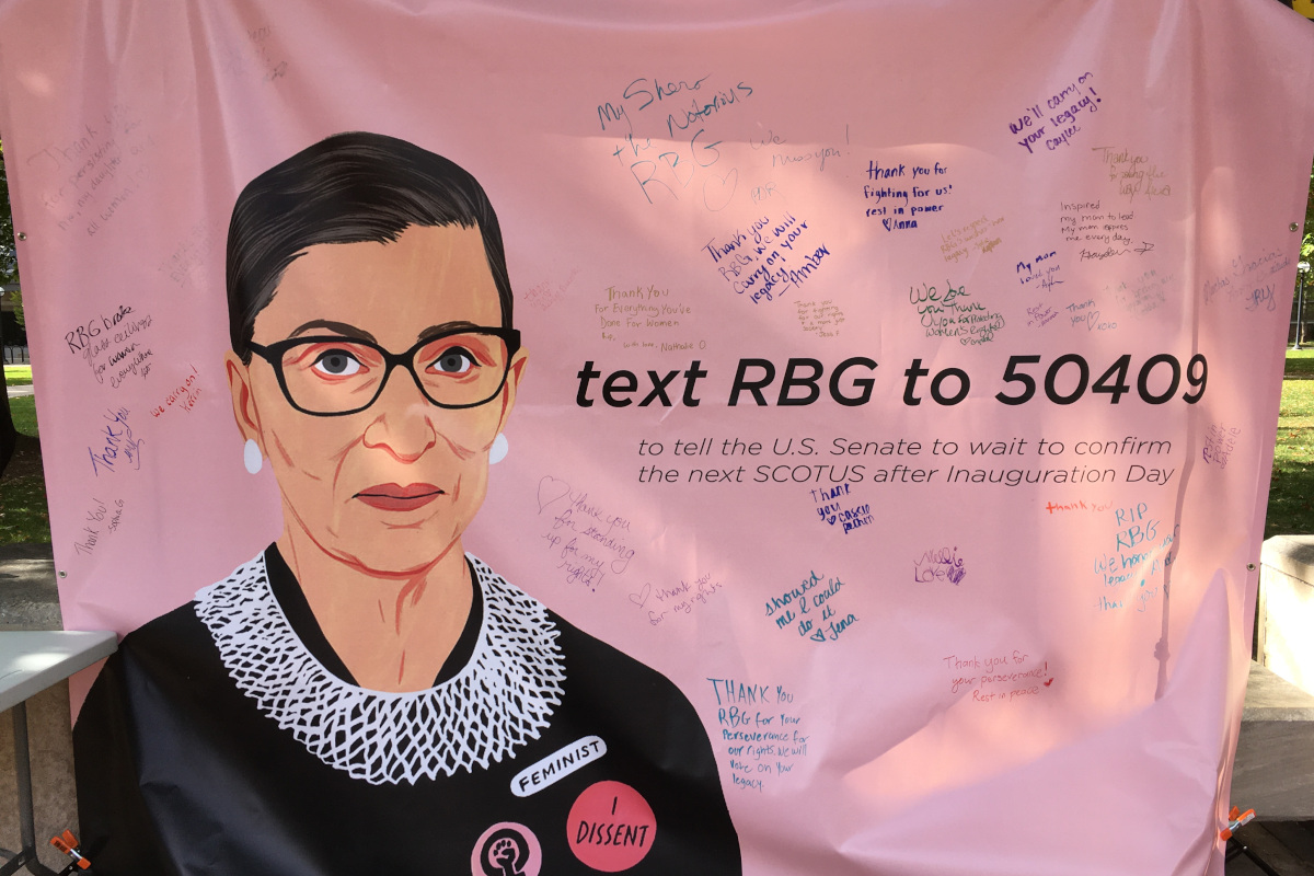 - A poster of Ruth Bader Ginsburg, urging a delay of the next Supreme Court confirmation.
