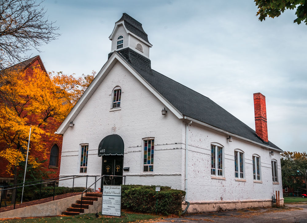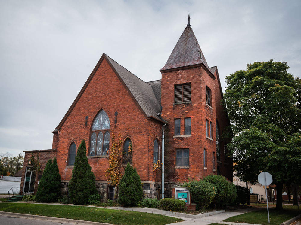 Recognized in 1848, the AME church was one of the first Black congregations in Ypsilanti. The church is a large, beautiful brick building with original stained glass windows. Services are still held there. The tall building is a neighborhood landmark and directly next door is the quaint, white schoolhouse.