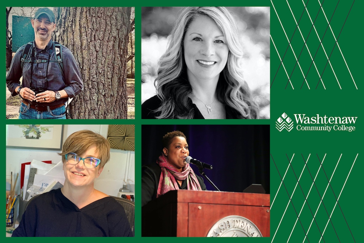 Photo collage of instructors at WCC who are motivated and happy to continue their in-person sessions. Collage by Lauren Brutger | Washtenaw Voice