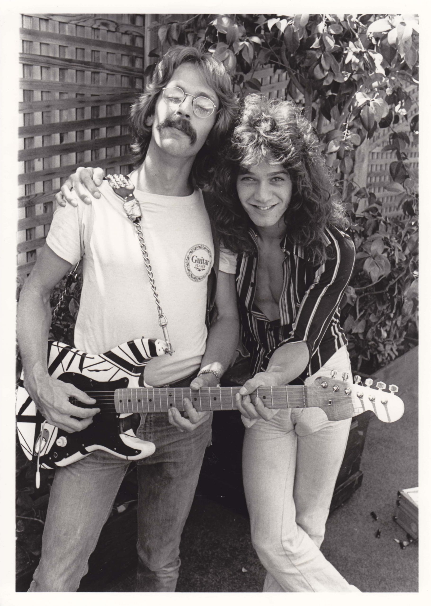 Jas Obrecht (left) with Eddie Van Halen after his first ever interview on June 26, 1978, captured by Jon Sievert. (Courtesy of Obrecht)