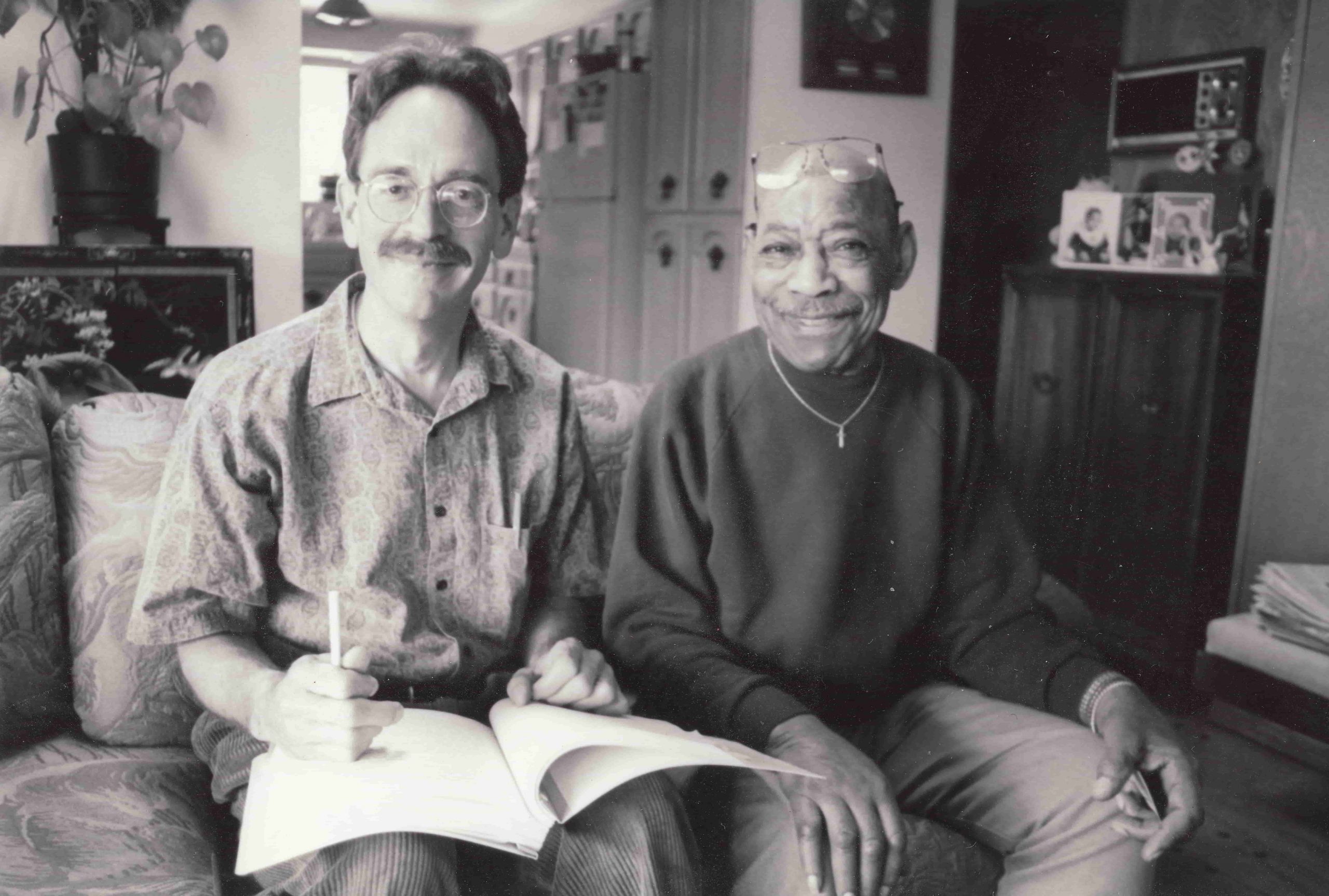 Jas Obrecht on the left with Al Hendrix, Jimi Hendrix’s father, in May 1998. (Courtesy of Obrecht)