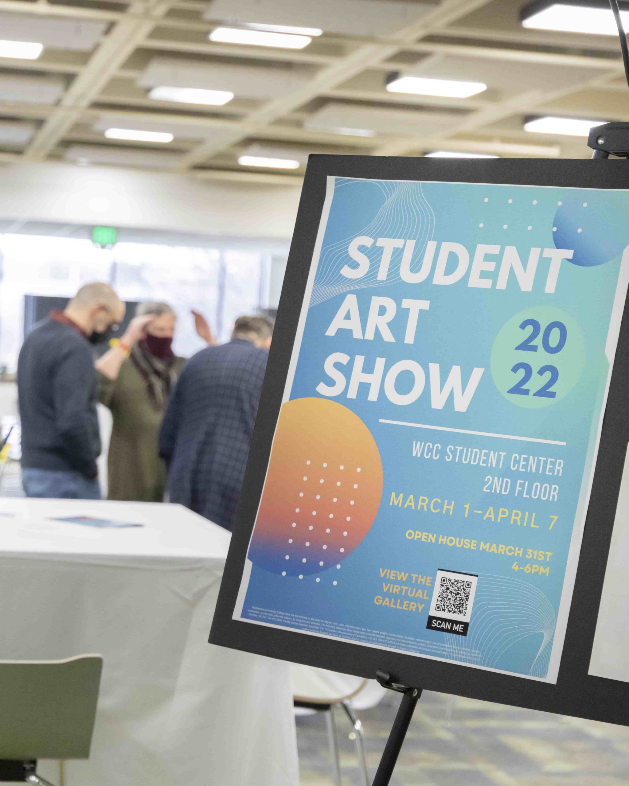 A sign promoting WCC’s student Art Show. Shelby Beaty | Washtenaw Voice