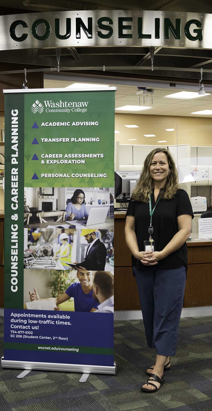 WCC counselor, Erin Goldman, outside of the Counseling office on the 2nd floor of the Student Center. Paula Farmer | Washtenaw Voice