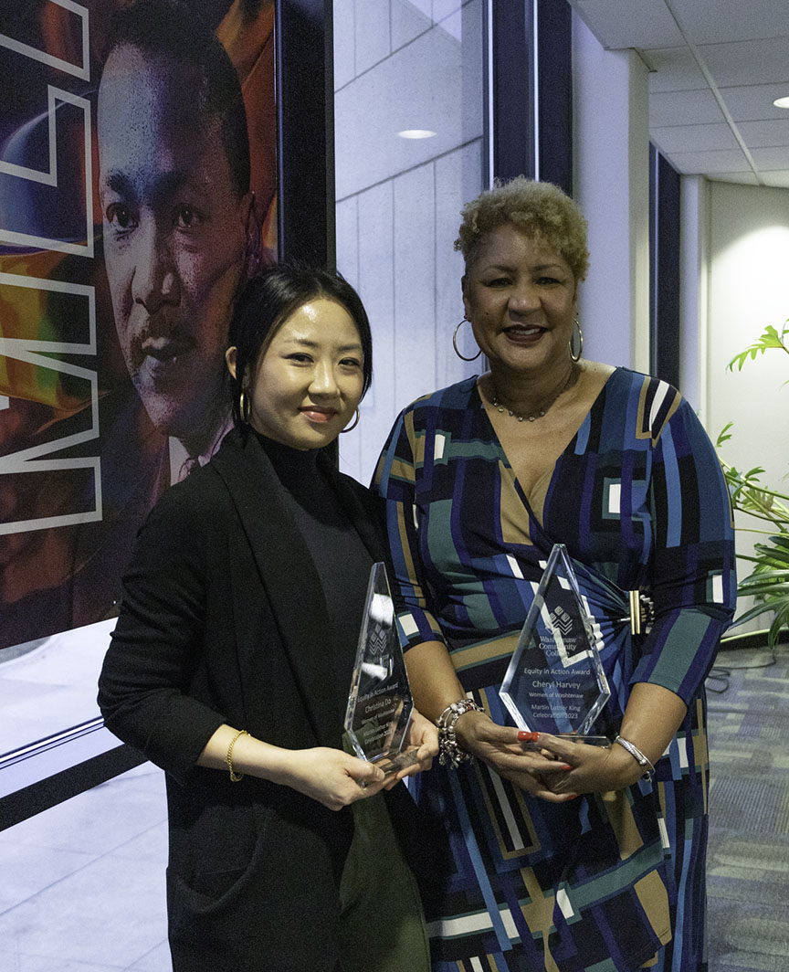 Christina Do (left) and Cheryl Harvey (right) each won an Equity in Action award from WCC for their contributions to the campus community. Ruby Go