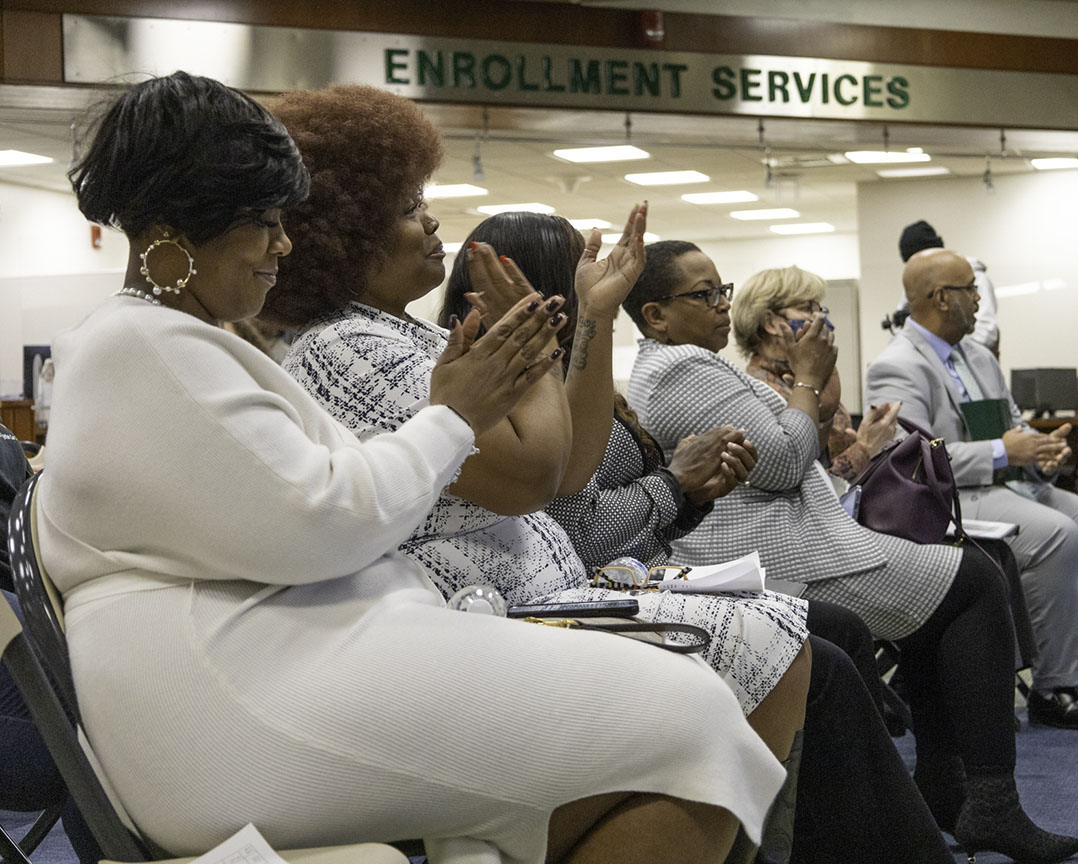 Equity in Action award winners Turquoise Neal (left), Kallista Marie Walker, and Shana Barker applaud during the celebration. Ruby Go