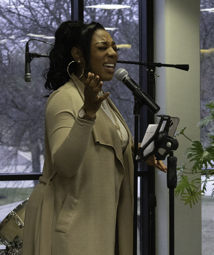 Before the speeches, Rashon shared her love of the Morris J. Lawrence building, a place she gravitated toward when she was a student. She then sang with instrumental accompaniment. Once the award ceremony concluded, with Christina Do being the last speaker, Rashon and the band performed again for the MLK Day event’s last half hour.