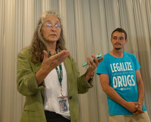 Teresa Herzog (left) during a CRP naloxone training session last semester. By bringing AA meetings to campus, the CRP continues to offer services for students struggling with substance use disorders. Ruby Go | Washtenaw Voice