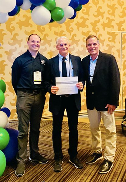 WCC biology professor Marvin Boluyt (center) accepts a Silver Award from Exercise is Medicine founder, Robert Sallis, and Exercise is Medicine on Campus co-chair, Neil Peterson, at the American College Sports Medicine National Meeting in San Diego in June 2022. Courtesy of Marvin Boluyt.