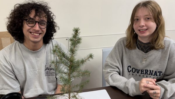 Two Sunrise Ann Arbor members and WCC students, Hunter Carlson and Kim Tieking, encourage their peers to use public transportation. Willow Symonds | The Washtenaw Voice