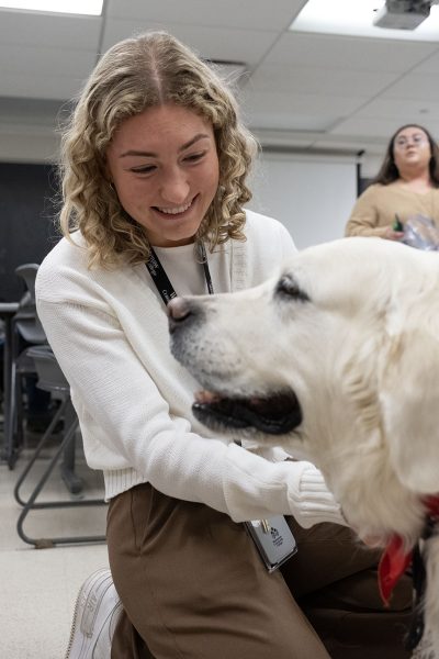 Emma, a 9-year-old golden retriever, is a member of Alliance of Therapy Dogs and provides help to people from all walks of life. Courtney Prielipp | Washtenaw Voice
