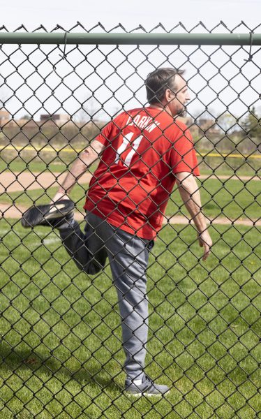 Rich Rezler stretches before the game starts. Paula Farmer | Washtenaw Voice