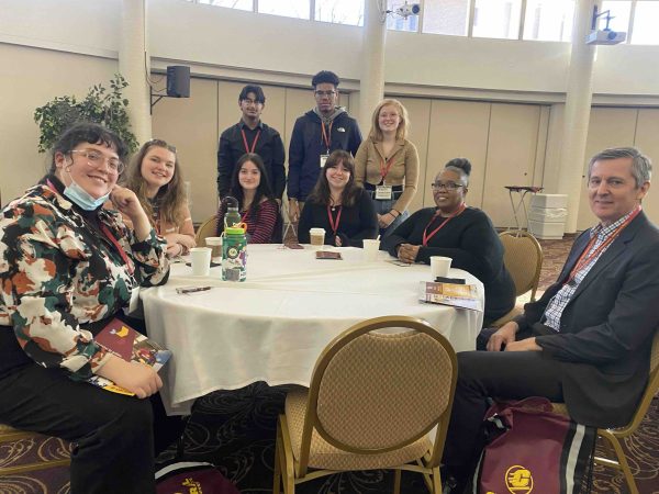 The Voice’s 2023-24 scholarship and contributing team attending the Michigan Community College Press Association Conference at Central Michigan University last April. Voice archive photo
