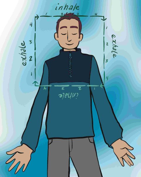 Square breathing is a grounding technique where you breath in for four seconds and exhale for four seconds. Think of it as a box of breaths. Jada Hauser | Washtenaw Voice